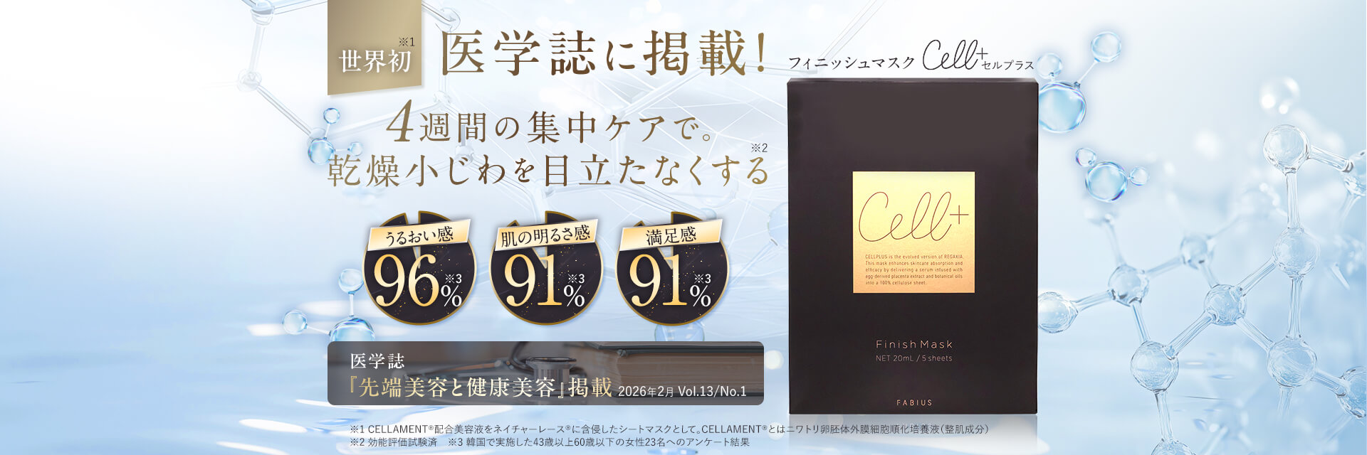 世界初(*1)!赤ちゃん遺伝子に着目した「CELLAMENT®(セラメント)」を新配合(*2)。スキンケアの一番最後にお使いいただくことで、スキンケア成分を角質層へ押し込む機能を底上げし、"より贅沢なスキンケア体感”を叶える新発想(*3)のシートマスク。