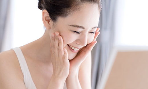 美肌成分が肌にいきわたるよう、手のひらで優しく押さえましよう。