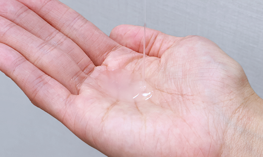 手のひらに適量をとります。500円玉大を目安に手にとります。