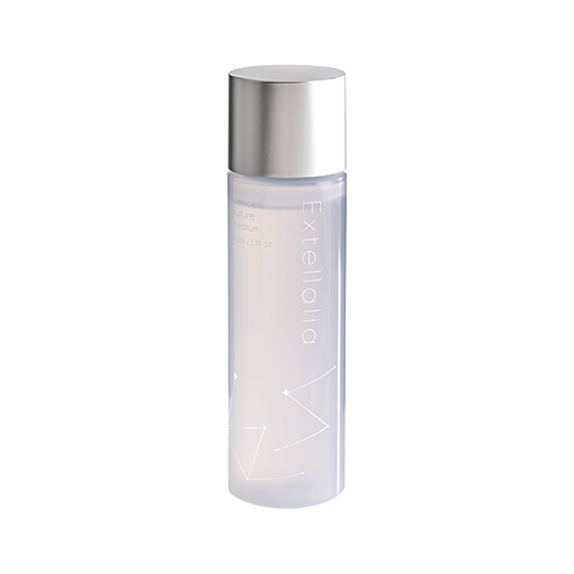 通常の化粧水は、水(精製水)の配合量が最も多いものが一般的。エクステラリアはコラーゲン水*1が40%配合され、3大保湿成分である「低分子ヒアルロン酸*2」「ネオシルク®︎*3」「3種のセラミド*4」も合わさった濃密なとろみが特徴でもちもちとした肌をサポート。