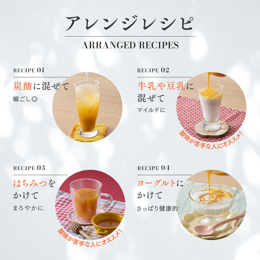 お子様もお飲みいただけます。酸味が気になる場合は、水やジュース、牛乳などで希釈してお飲みください。